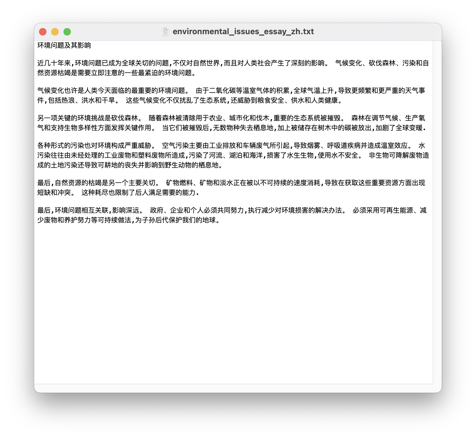 比较懒,直接让AI写了一个关于环境问题的TXT,上传可以看到直接检测到百分百英文。