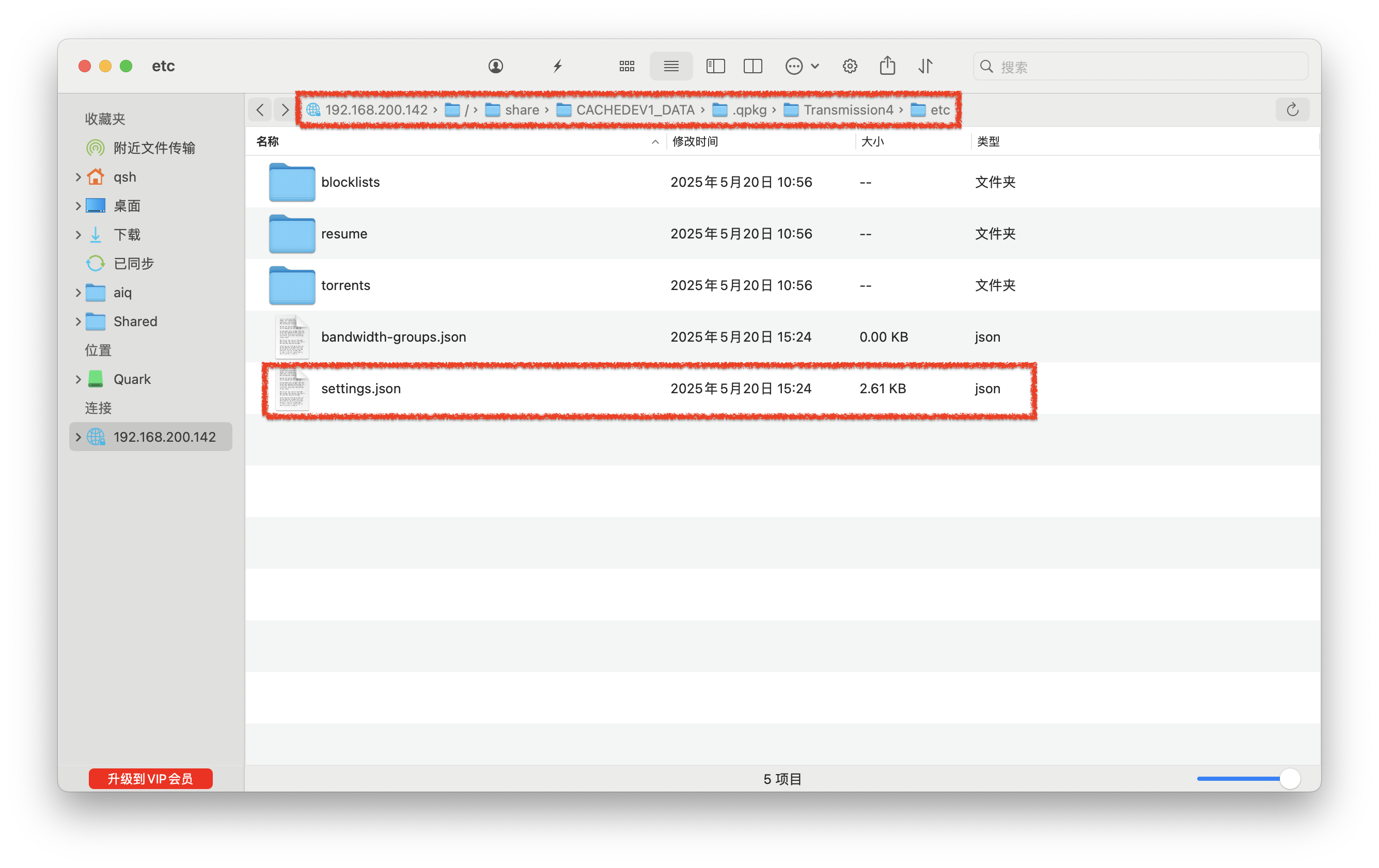 我用的macOS演示,猫头鹰连接上NAS,找到.qpkg目录下。定位到下图所示的位置。