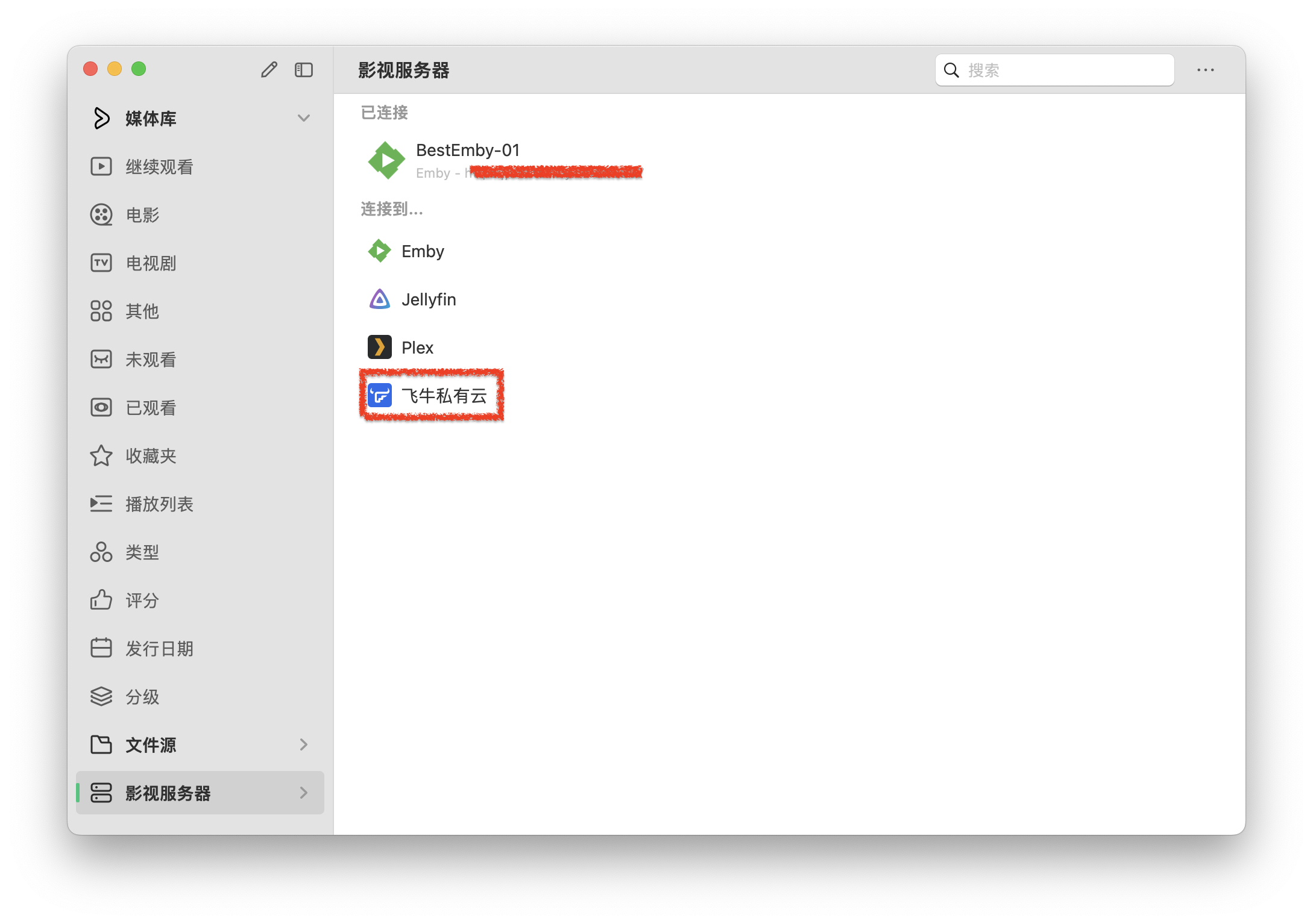 VidHub 除了支持直连Plex、Emby、Jellyfin这类影视服务器,甚至还额外支持飞牛私有云,不过也不奇怪,飞牛NAS的影视服务的确很强!