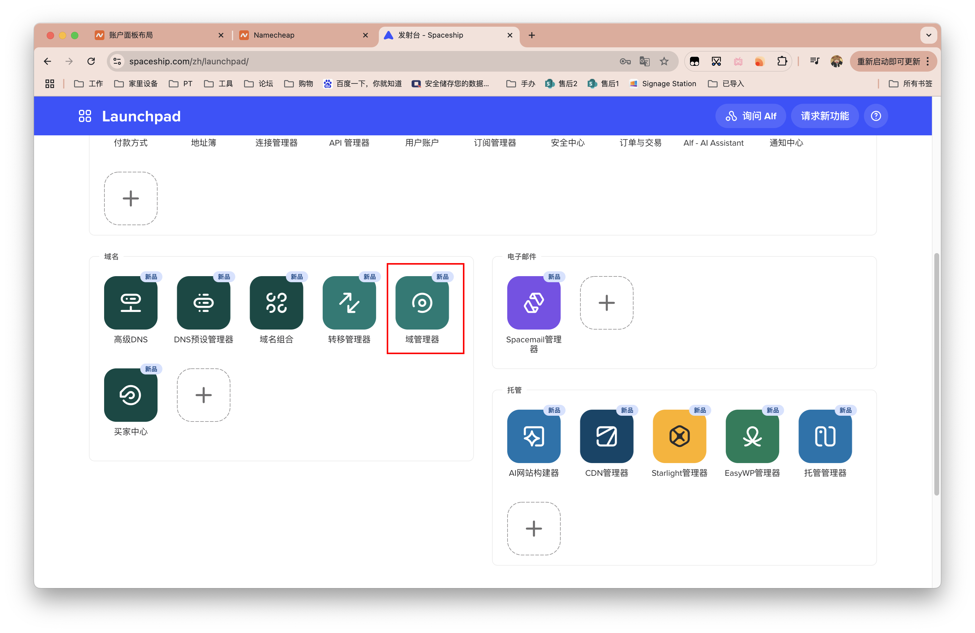 点击顶部栏的Launchpad(控制台),进行域名管理。