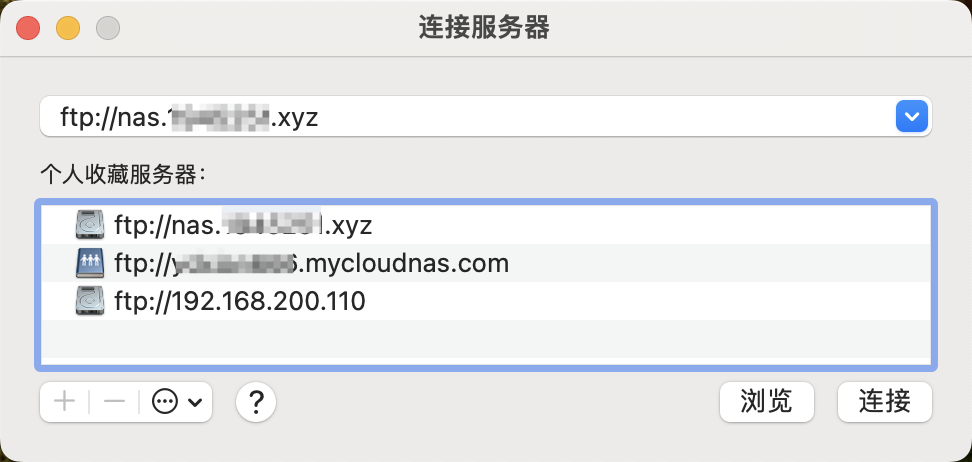 上面提到的NAS中挂载远程设备,如下图所示,我在公司挂载了家里的NAS以及一个VPS服务器。