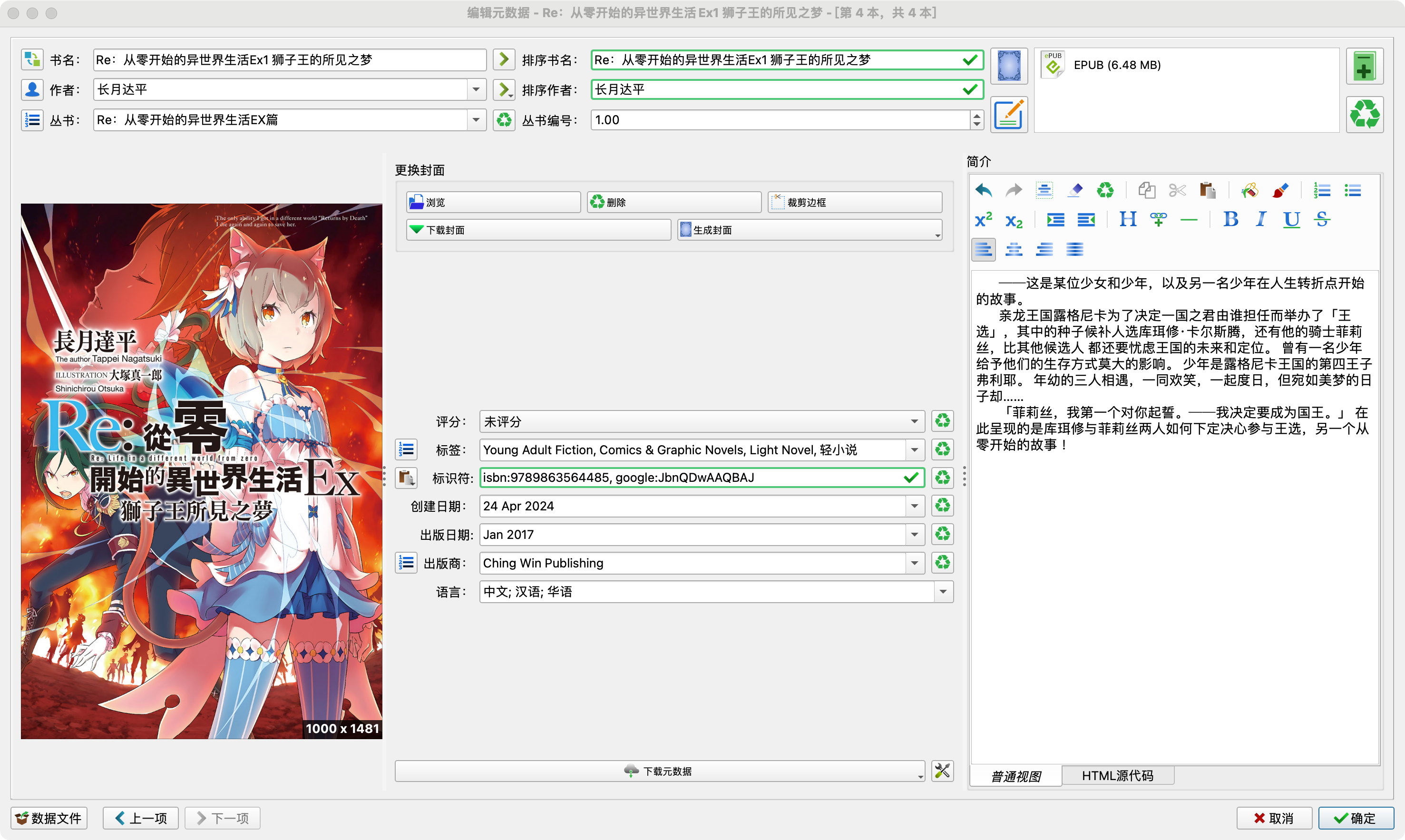 个人建议尤是轻小说类,资源下好先检查元数据,不然后面会头大的。也可以借助联网元数据匹配: