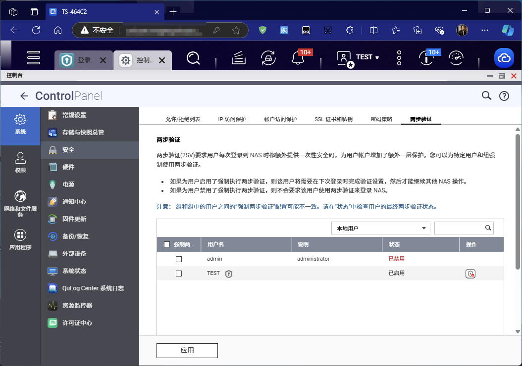 但若输入正确的二次验证码提示时间设备系统时间对不上,导致验证错误无法登录nas,或者是在控制台安全中开启了强制启用二次验证,导致设备无法登录,请按照以下步骤进行操作: