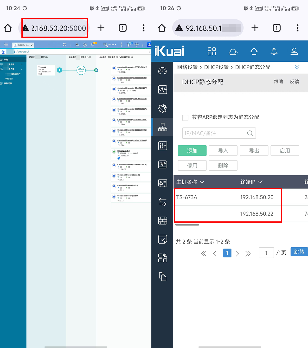 用手机浏览器输入家里的内网设备地址尝试访问,都没问题。